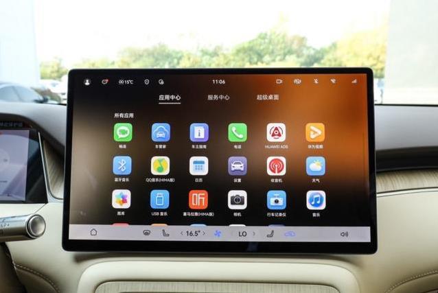 坐进去感觉像进了个温暖的客厅,座椅包裹大面积软包和绒面,手摸上去软乎乎的舒服。内饰颜色有韶华杏、凝夜紫可选,总有适合自己的那种。仪表盘十点二五英寸,中控屏十五点六英寸分辨率高,操作起来顺滑。挡杆用怀挡,台面干净不乱。五十瓦无线充电板搁手机上去飞快,氛围灯两百五十六色,随心情调。车里还能唱KTV,堵车无聊的时候吼两嗓子解闷。整个车机基于鸿蒙系统,和华为手机连上后,导航、音乐、接电话直接流转过来,不用再低头戳屏。多区语音喊一声“小艺”,空调温度、放歌、查天气全搞定,新手开着也不手忙脚乱。